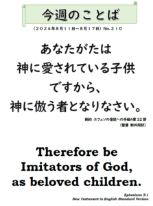 あなたがたは神に愛されている子供ですから、神に倣う者となりなさい。