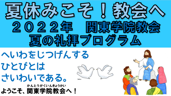 2022年、夏の礼拝プログラムのご案内です。 夏休みこそ!ぜひ教会へおでかけください。 毎週日曜日、礼拝を行います。 2022夏休み教会学校・主日礼拝ご案内 &…