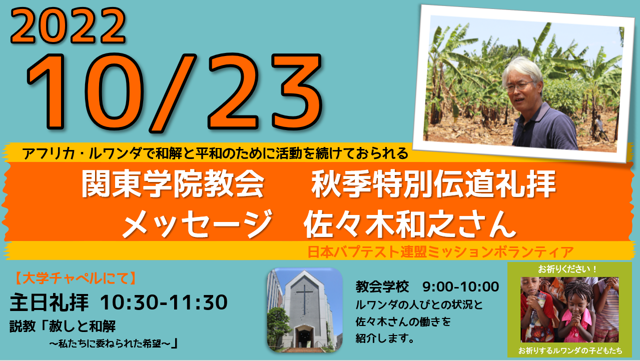 関東学院教会 2022年秋季特別プログラム 🍂ごあいさつ 秋も深まり、寒さも増してきました。 みなさまに神の恵みと平和をお祈りいたします。 関東学院教会では、…