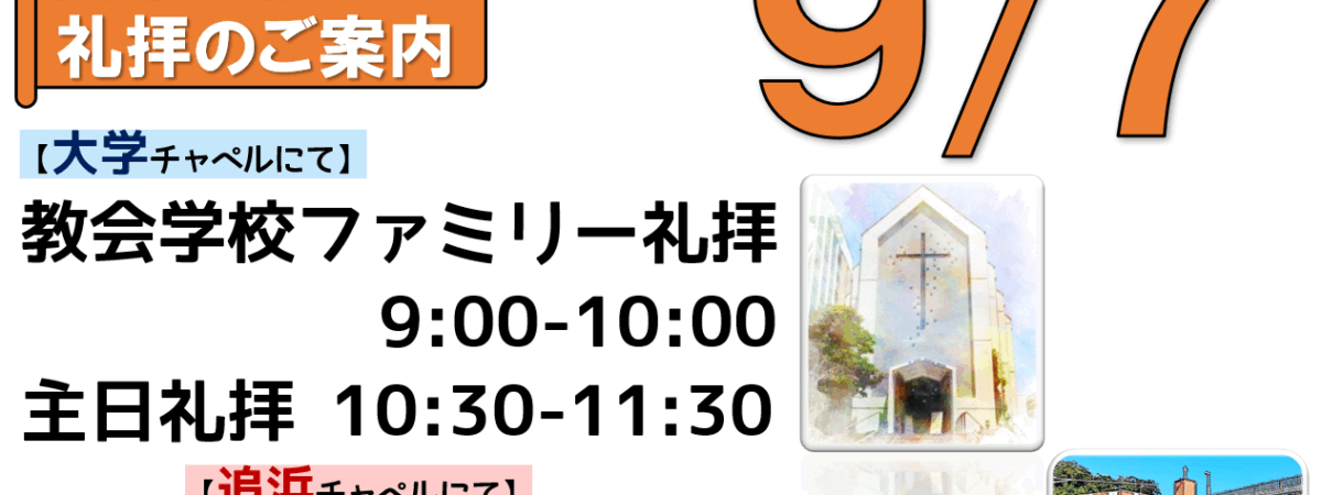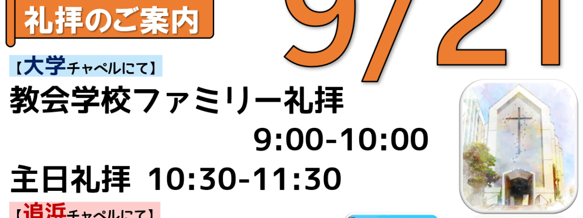 2025年9月14日(日)関東学院教会 追浜チャペル完成12周年記念主日 礼拝のご案内、YouTube配信リンク、説教要約