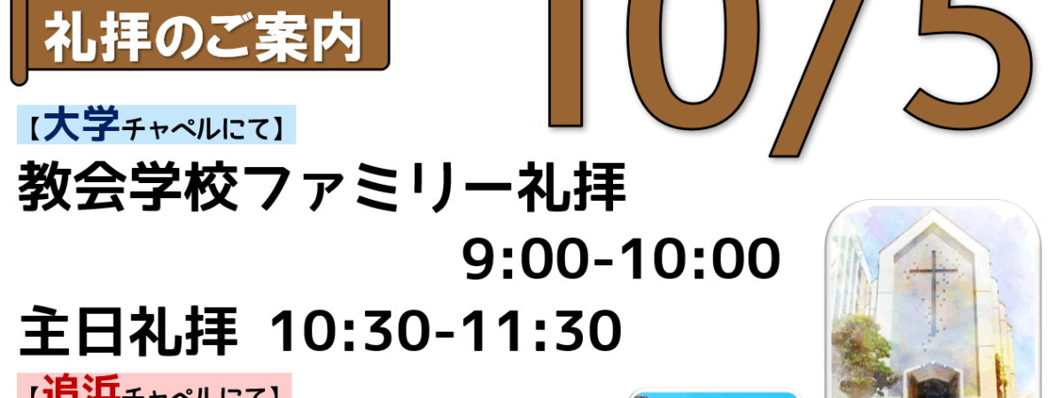 2025年10月5日(日)関東学院教会 礼拝のご案内、YouTube配信リンク、説教要約