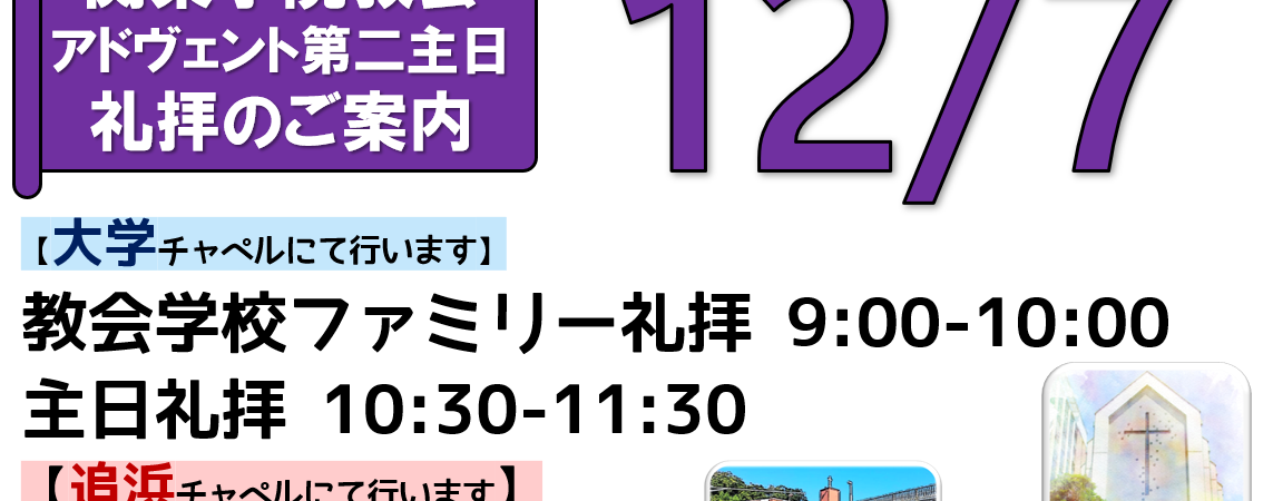 2025年12月7日(日)関東学院教会 アドヴェント第二主日 礼拝のご案内、YouTube配信リンク、説教要約