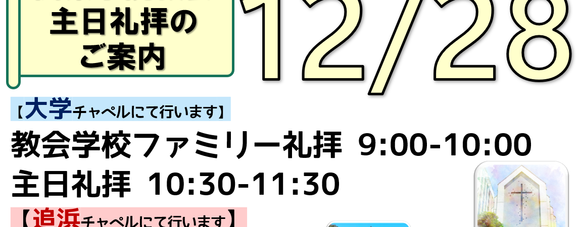 2025年12月28日(日)関東学院教会 礼拝のご案内、YouTube配信リンク、説教要約