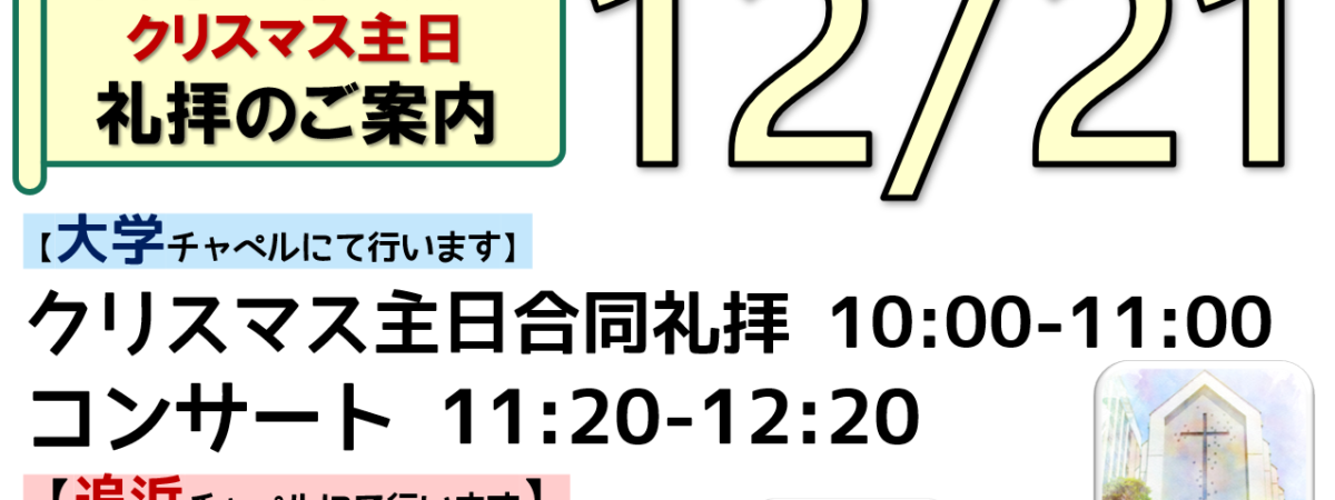 2025年12月21日(日)関東学院教会 クリスマス主日 礼拝のご案内、YouTube配信リンク、説教要約