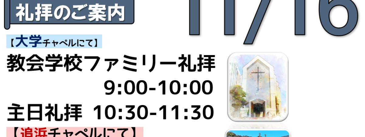 2025年11月16日(日)関東学院教会 礼拝のご案内、YouTube配信リンク、説教要約