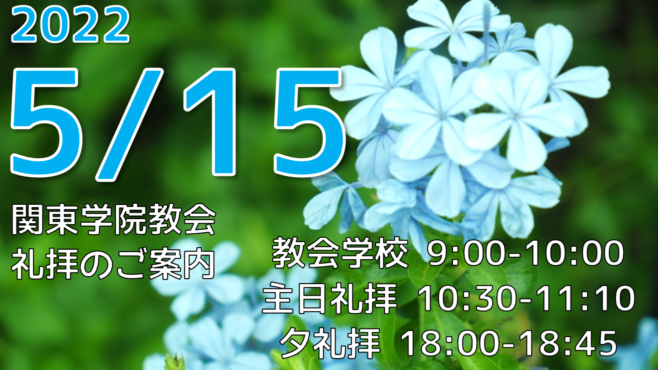 2022年5月15日(日)関東学院教会 教会学校礼拝、主日礼拝、夕礼拝のご案内、YouTube配信リンク、説教要約