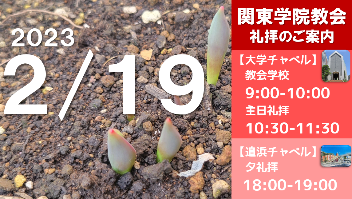 2023年2月19日(日)関東学院教会 教会学校礼拝、主日礼拝、夕礼拝のご案内、YouTube配信リンク、説教要約