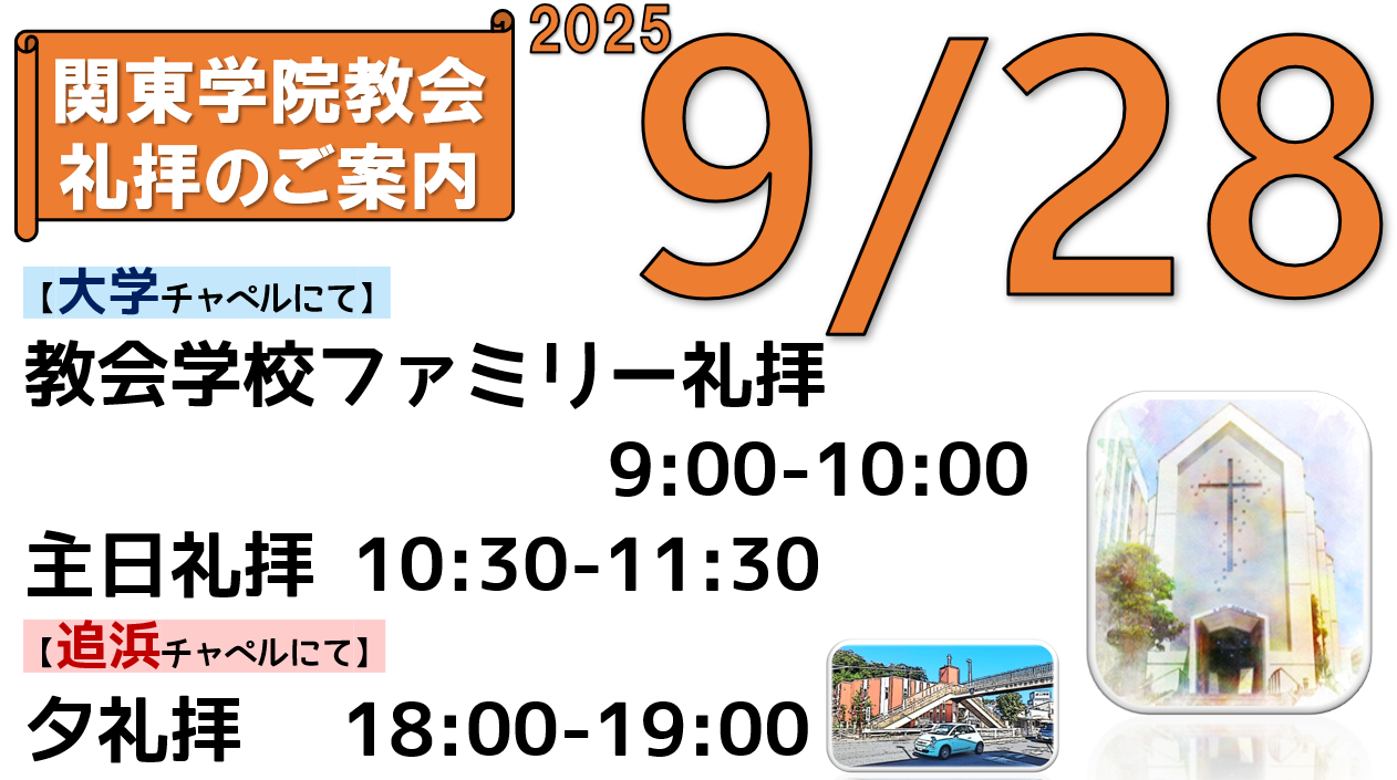 2025年9月28日(日)関東学院教会 礼拝のご案内、YouTube配信リンク、説教要約