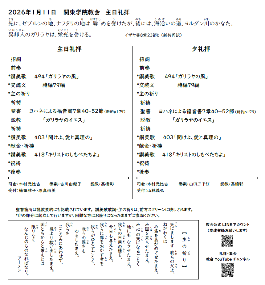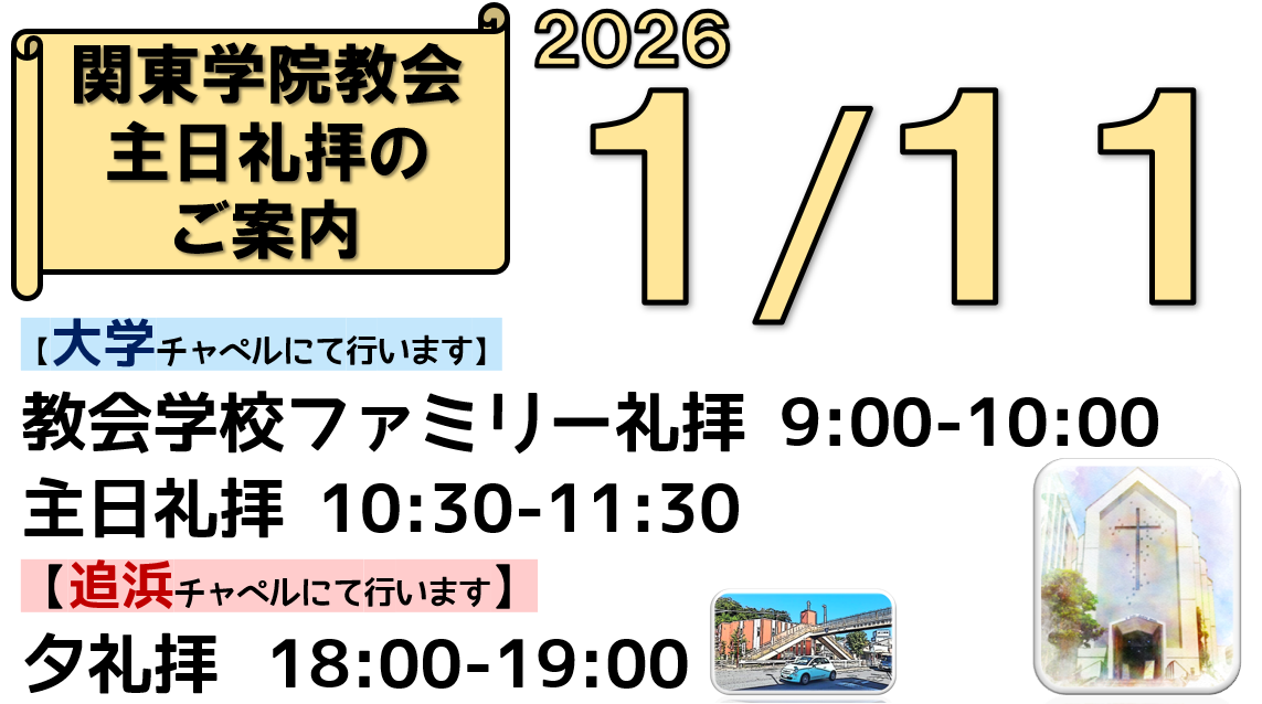 2026年1月11日(日)関東学院教会 礼拝のご案内、YouTube配信リンク、説教要約
