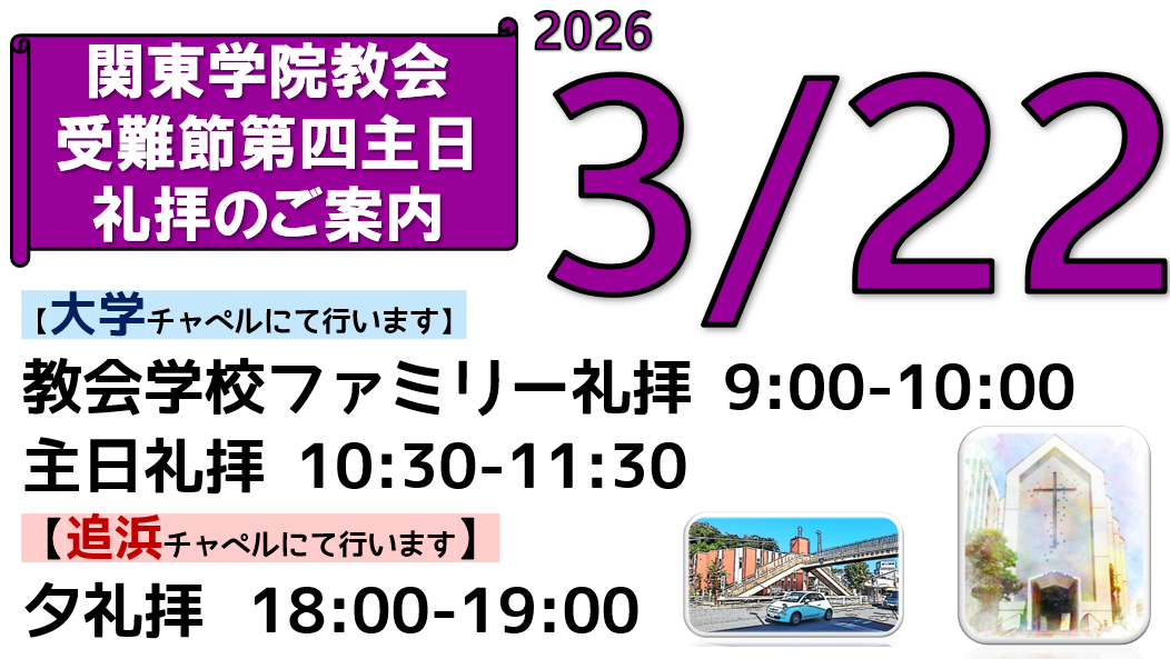 2026年3月22日(日)関東学院教会 受難節第五主日 礼拝のご案内、YouTube配信リンク、説教要約