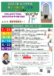 2021年 夏休み期間 教会学校礼拝の案内です。