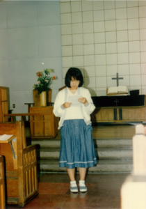 36歳の頃、『7人家族の切り盛り』と『仕事(実家の幼稚園勤務)』の両立によって、私の自由な時間が全く無い時期が続いたことで、心身共に疲れが溜まっていきました。そんな疲れが限界に達しようとしていた頃に、夫から「関東学院教会に行ってみよう」(夫は大学時代、学生寮で生活し、日曜日には教会へ行くことを勧められていた)と誘われ、このことが、初めて教会へ行くきっかけとなりました。