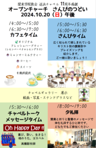 2024年10月20日(日)14:00~16:30 追浜チャペル完成11周年記念 オープンチャーチ・さんびのつどい のご案内