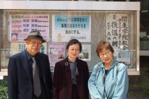 2017年4月16日 イースター主日 大学チャペルの前で加納政弘師、加納智子さんと一緒に。